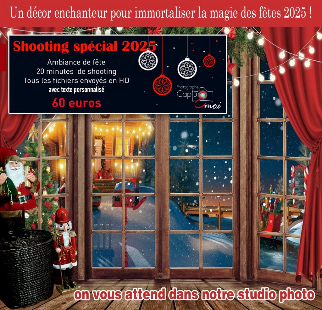 A l’approche du mois de décembre, l’ambiance chaleureuse des fêtes de Noël se fait déjà ressentir. Les rues s’illuminent et les sapins se parent de brillantes décorations pour faire naitre la magie et la féérie de ce rendez-vous annuel. Noël rime avec joie, rire et bonheur, c’est par ailleurs le moment propice pour capturer les instants précieux avec les êtres aimés. C’est un rassemblement familial par excellence. J’organise une shooting « Spécial Noël 2025 », dans un superbe décor de fêtes, dans le studio de Capturemoi.